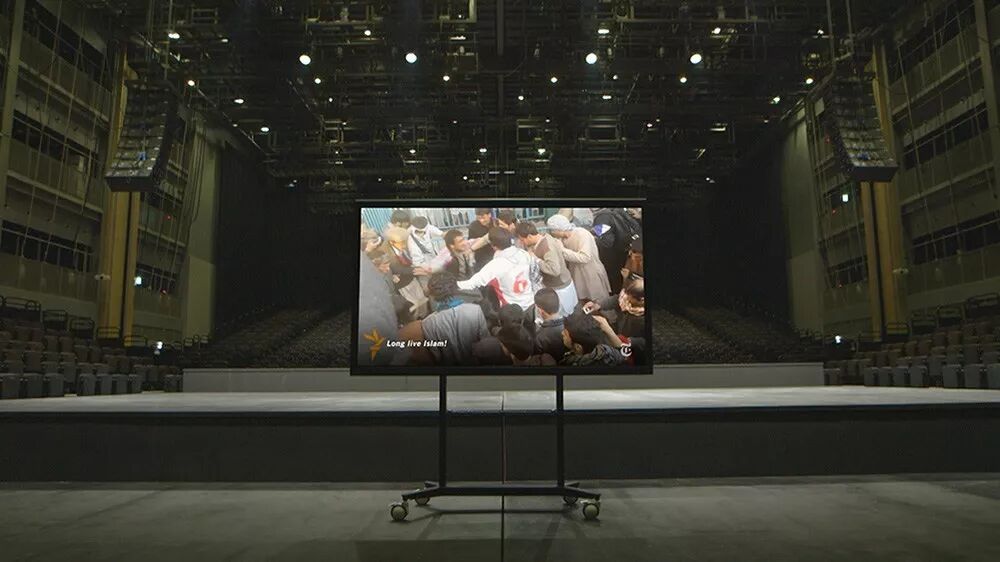 展览亦是一次万花筒之旅,发生在因技术过度发展而导致人类崩溃的「后人类世」时代。主人公是一个由 Macuga 设计的机器人,它背诵排练着从众多重要演讲中摘录的独白,声称自己是人类演讲的存储库。展览期间,每周两场的书法家现场表演将与机器人的演讲同时进行,为机器人的独白带来不同诠释。